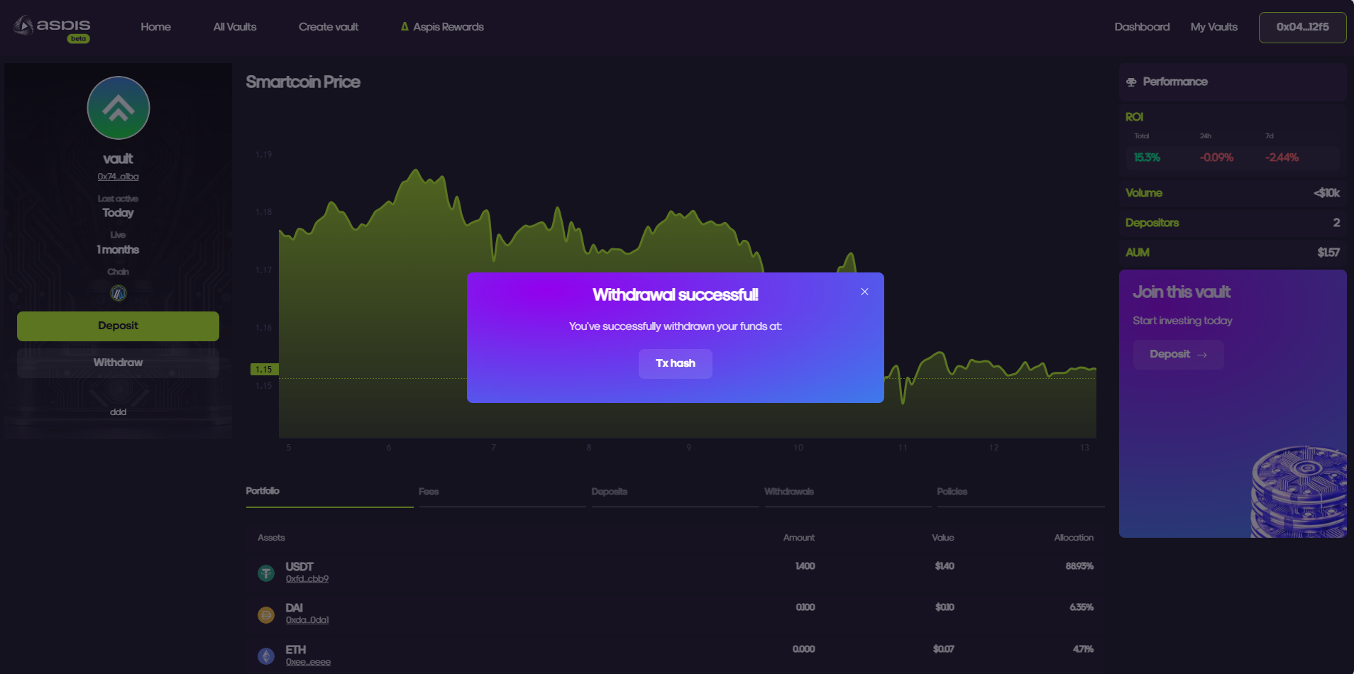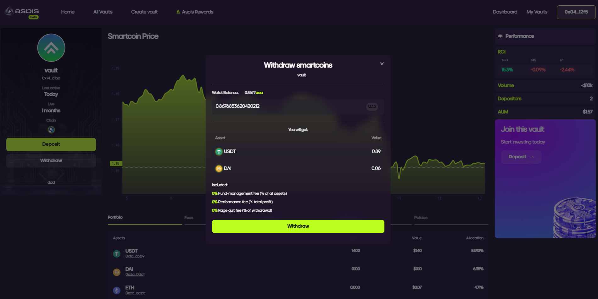 c. Select the **Vault** from which you want to **withdraw funds**.